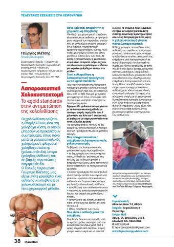 Σήμερα κάθε χολοκυστεκτομή γίνεται με τη λαπαροσκοπική μέθοδο με τέσσερις μικρές τομές (δύο των 5 χιλιοστών και δύο του 1 εκατοστού), με μηδαμινό μετεγχειρητικό πόνο και νοσηλεία μίας ημέρας!