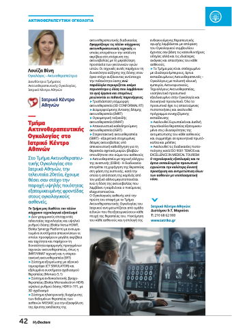 Στο Τμήμα Ακτινοθεραπευ- τικής Ογκολογίας στο Ιατρικό Αθηνών, την τελευταία 20ετία, έχουμε θέσει σαν στόχο την παροχή υψηλής ποιότητας εξατομικευμένης φροντίδας στους ογκολογικούς ασθενείς.